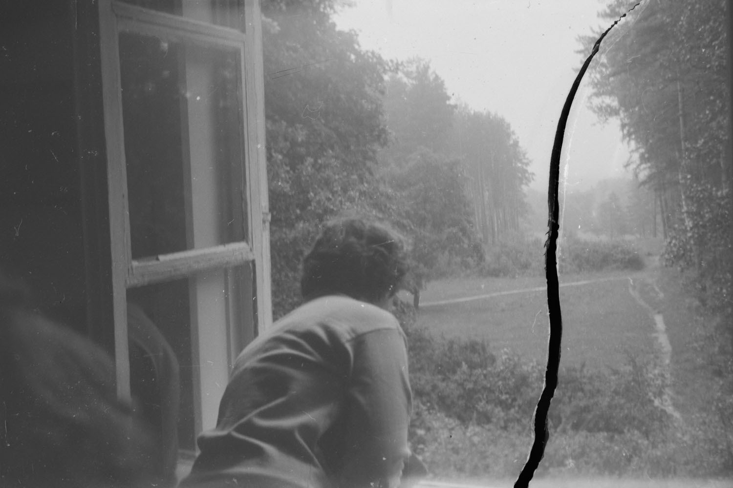 Sarov is still obscured by the trees and bushes, like the Sleeping Beauty’s castle. I went back there, to the house where my grandfather, who worked at KB-11, lived. Like many other young scientists, he thought he would go to the city for a year or two but stayed there for the rest of his life. I never knew him, but inherited his archive of film negatives. Due to strict secrecy, his photographs lack direct documentation, depicting only family and nature, but marked by traces of anxiety—scratches, burnt spots, and mold.